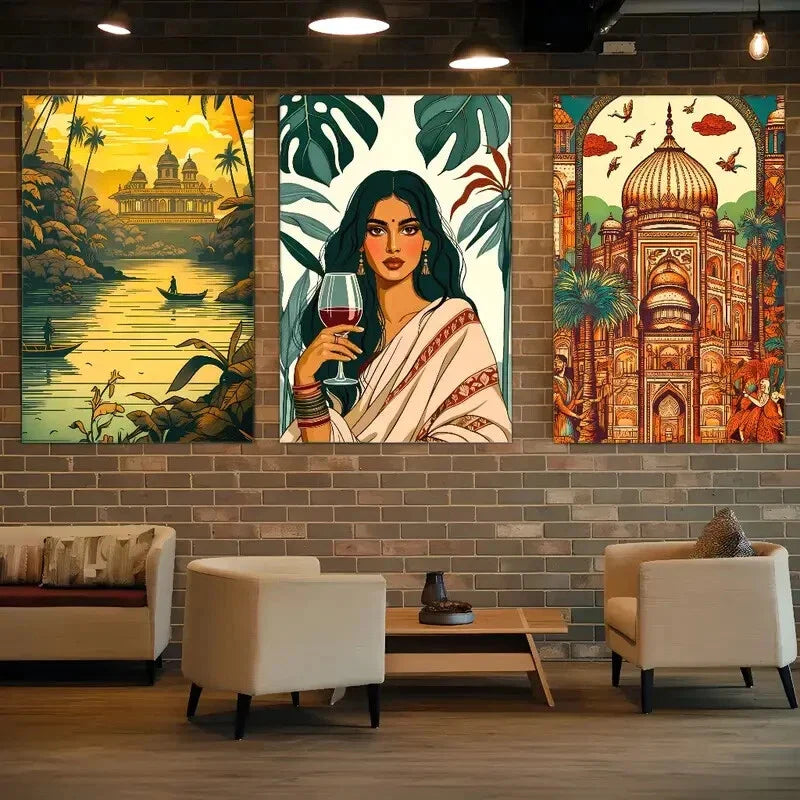 3pcs Fashionable Women Architecture And Landscape Metal Print Ready to Hang Art