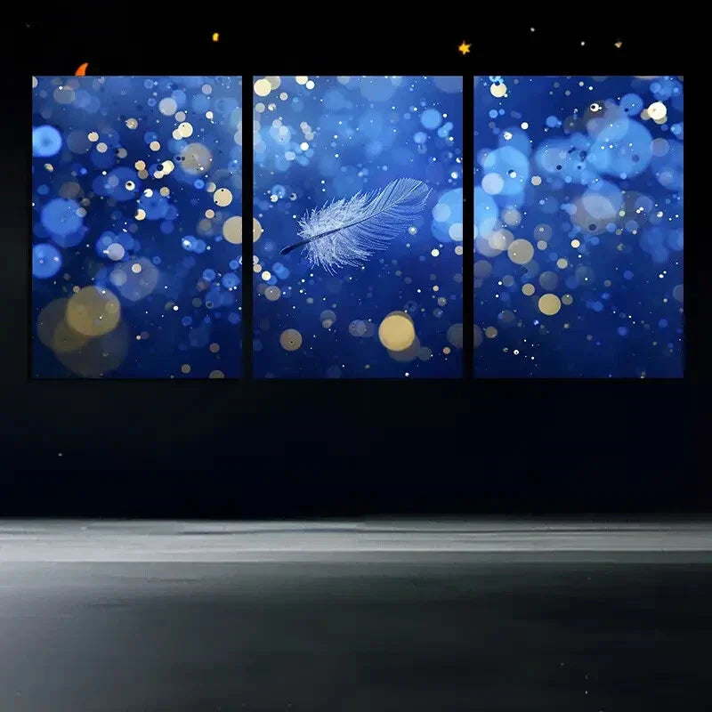 3pcs Feathers Blue Bubbles Wing Metal Print Ready to Hang Art