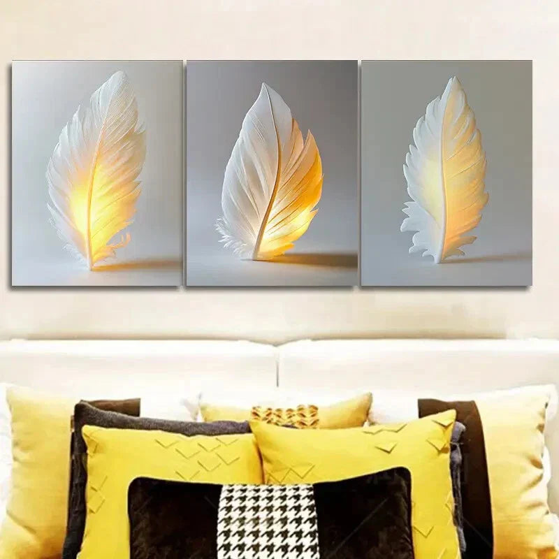 3pcs Feathers that glow Wall Art Set Canvas Framed 40x60cm - High Quality Print 100% Australian Made Wall Canvas Ready to Hang