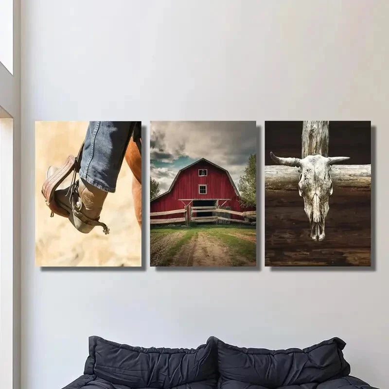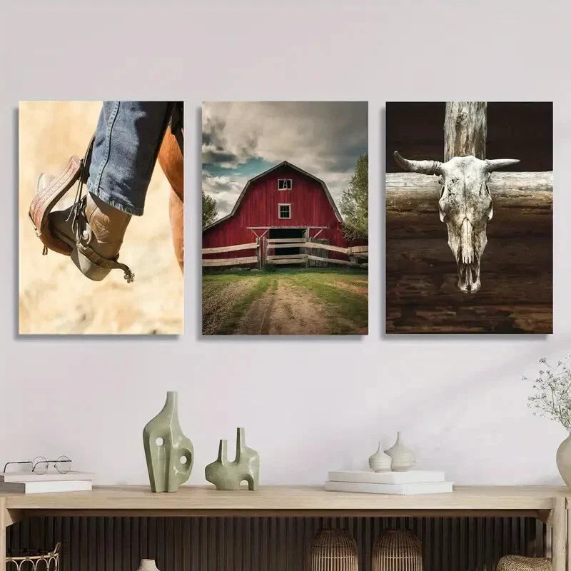 3pcs Featuring a Cowboy Theme Metal Print Ready to Hang Art