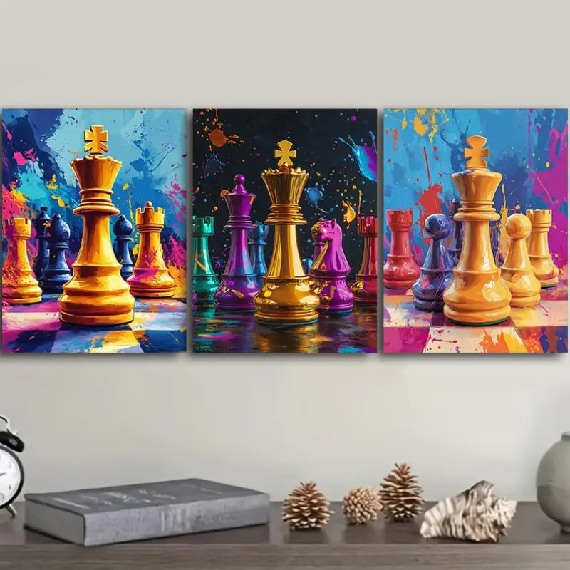 3pcs Featuring a Digital Illustration of a Chess Piece Metal Print Ready to Hang Art