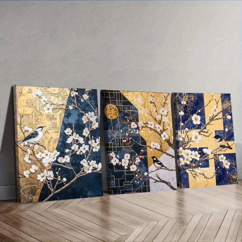 3pcs Featuring a Plum Design Wall Art Set Canvas Framed 40x60cm - High Quality Print 100% Australian Made Wall Canvas Ready to Hang