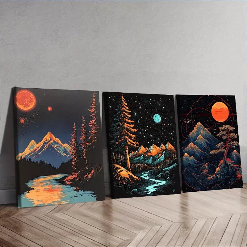 3pcs Featuring A Starry Sky Nature Moon Wall Art Set Canvas Framed 40x60cm - High Quality Print 100% Australian Made Wall Canvas Ready to Hang