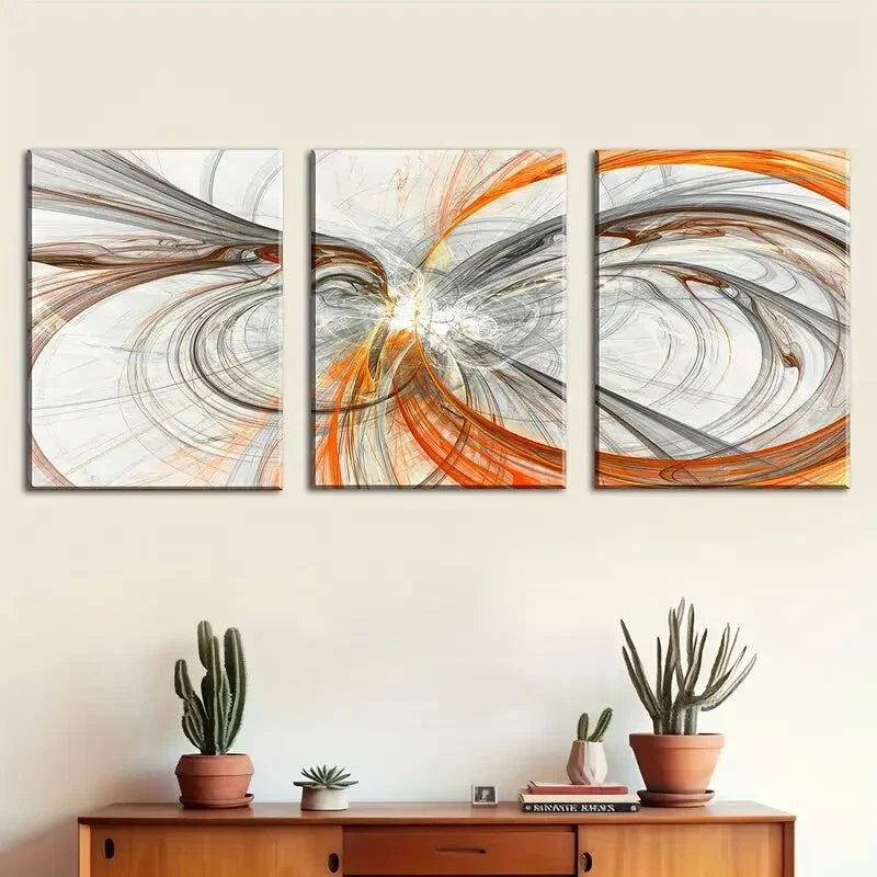3pcs Featuring Abstract Orange And Gray Lines Metal Print Ready to Hang Art