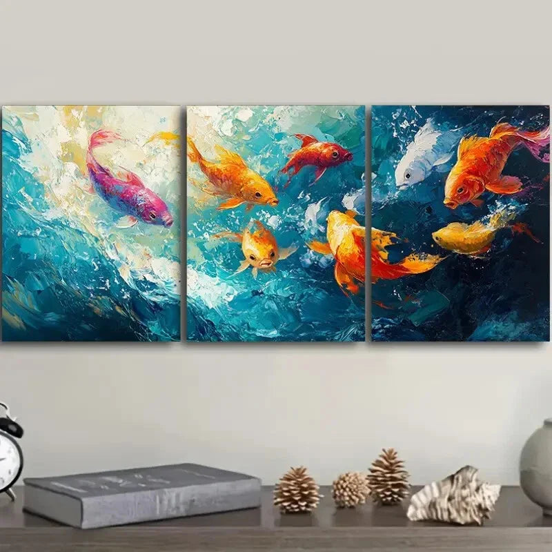 3pcs Featuring An Infinite School Of Fish Metal Print Ready to Hang Art