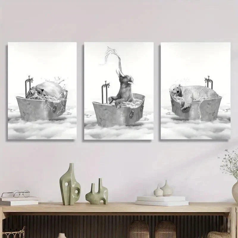 3pcs ,Featuring Animal Illustrations Metal Print Ready to Hang Art