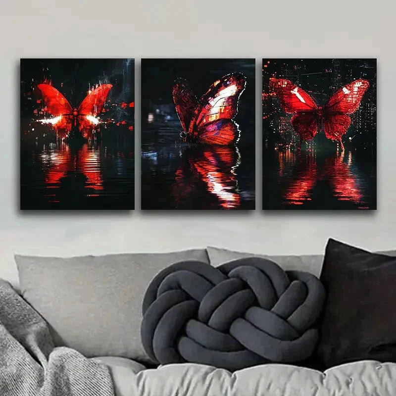 3pcs Featuring Butterfly-Themed Artwork, Metal Print Ready to Hang Art