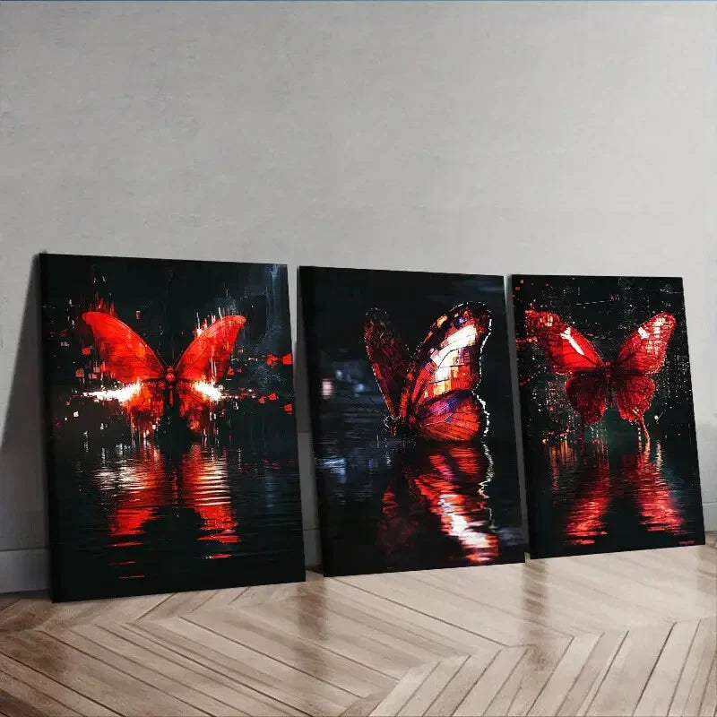 3pcs Featuring Butterfly-Themed Wall Art Set Canvas Framed 40x60cm - High Quality Print 100% Australian Made Wall Canvas Ready to Hang