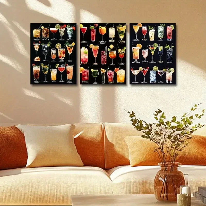 3pcs Featuring Cocktails Design Metal Print Ready to Hang Art