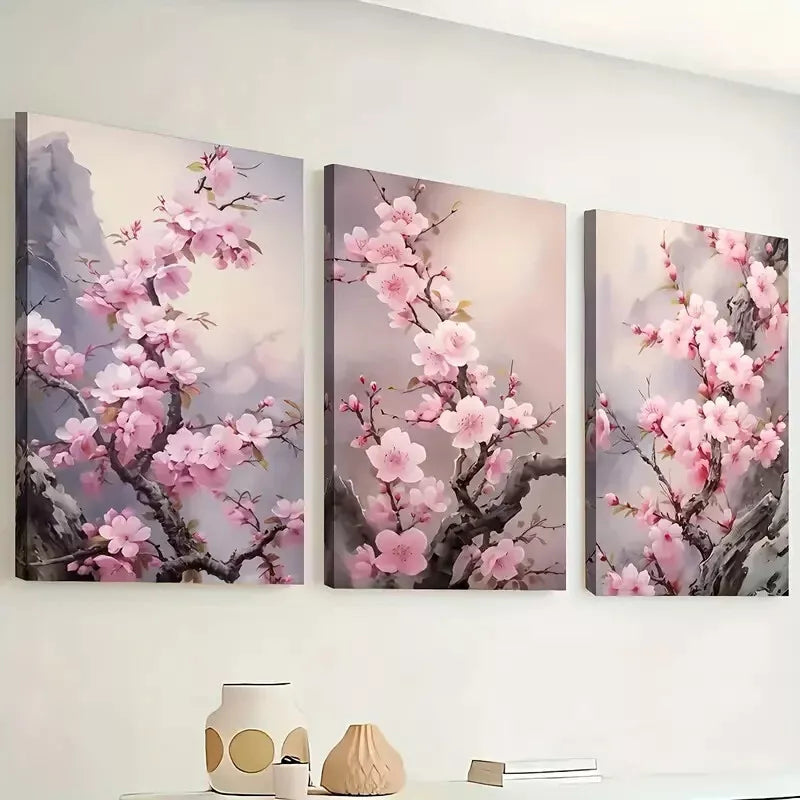 3pcs Featuring Delightful Pink Cherry Blossom Wall Art Set Canvas Framed 40x60cm - High Quality Print 100% Australian Made Wall Canvas Ready to Hang