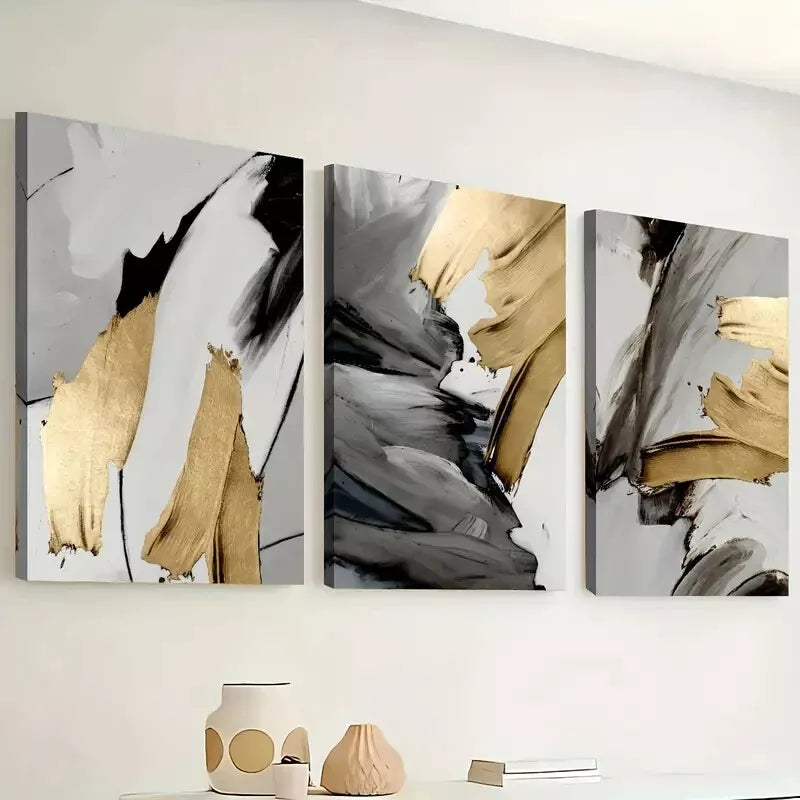 3pcs Featuring Golden Abstract Light Luxury Wall Art Set Canvas Framed 40x60cm - High Quality Print 100% Australian Made Wall Canvas Ready to Hang