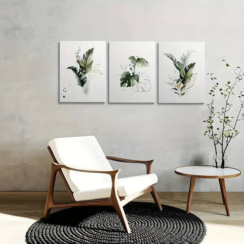 3pcs Featuring Green Plant Designs Minimalist Metal Print Ready to Hang Art