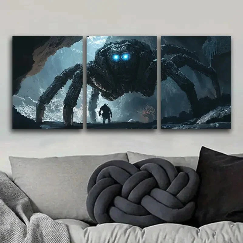3pcs Featuring Large Mechanical Spiders, I Metal Print Ready to Hang Art