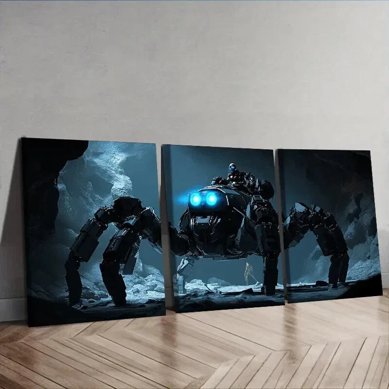 3pcs Featuring Large Mechanical Spiders Wall Art Set Canvas Framed 40x60cm - High Quality Print 100% Australian Made Wall Canvas Ready to Hang