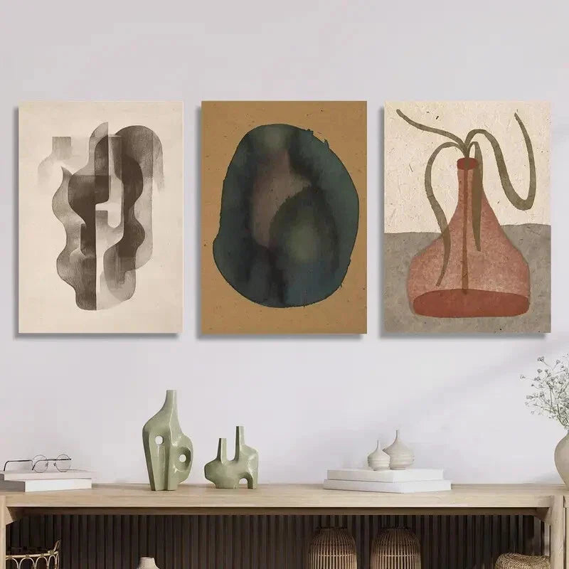 3pcs Featuring Minimalist And Bohemian Designs, Metal Print Ready to Hang Art
