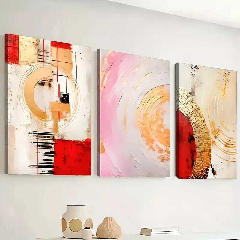 3pcs Featuring Modern Abstract Geometric Gold Wall Art Set Canvas Framed 40x60cm - High Quality Print 100% Australian Made Wall Canvas Ready to Hang