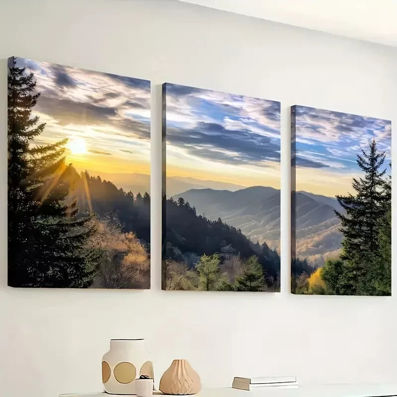 3pcs Featuring Mountain Sunset Forest Nature Wall Art Set Canvas Framed 40x60cm - High Quality Print 100% Australian Made Wall Canvas Ready to Hang