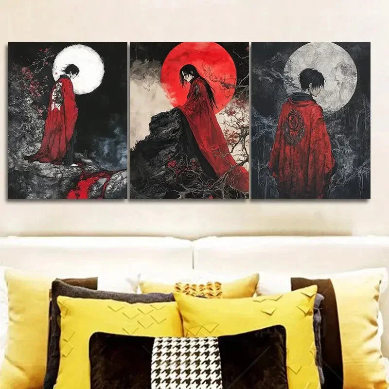 3pcs Featuring The Dark Lord of Hell Wall Art Set Canvas Framed 40x60cm - High Quality Print 100% Australian Made Wall Canvas Ready to Hang