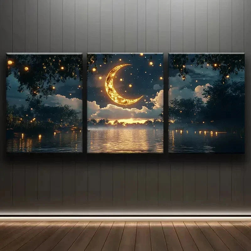 3pcs Featuring the Moon in the Sky Perfect Wall Art Set Canvas Framed 40x60cm - High Quality Print 100% Australian Made Wall Canvas Ready to Hang