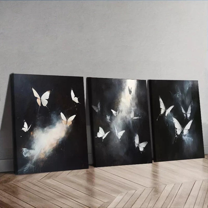 3pcs Featuring White Butterflies in Flight Wall Art Set Canvas Framed 40x60cm - High Quality Print 100% Australian Made Wall Canvas Ready to Hang