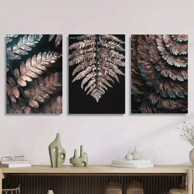 3pcs Fern Leaves Ink Painting Prints Metal Print Ready to Hang Art