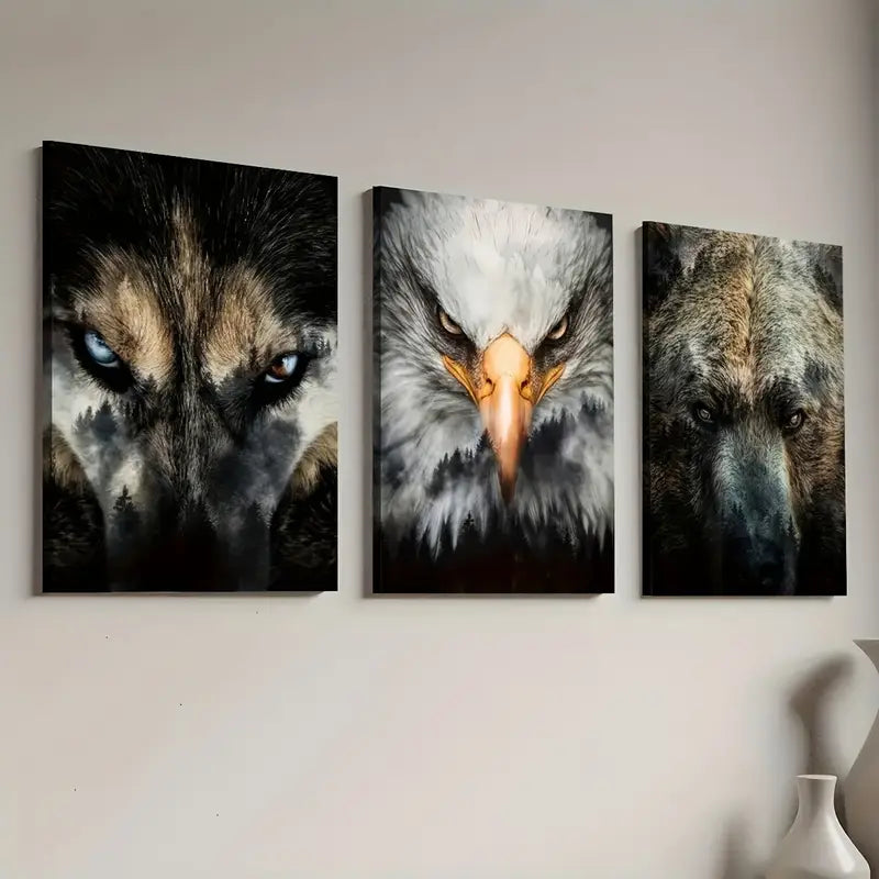 3pcs Ferocious Animals Gaze At Modern Fashion Art Wall Art Set Canvas Framed 40x60cm - High Quality Print 100% Australian Made Wall Canvas Ready to Hang