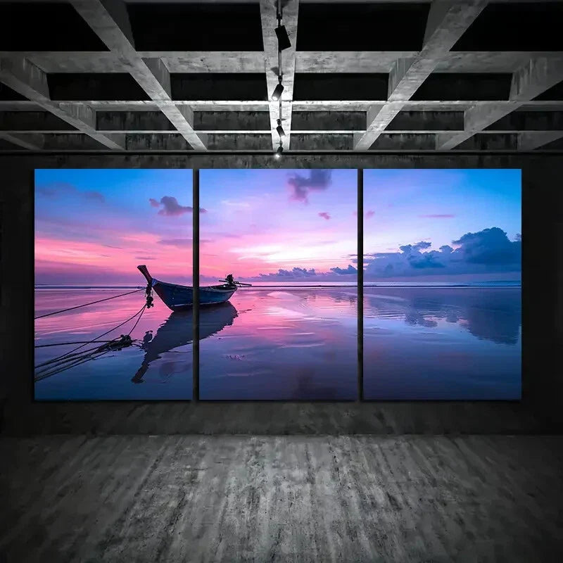 3pcs Fishing Boats Tied To The Shore Metal Print Ready to Hang Art