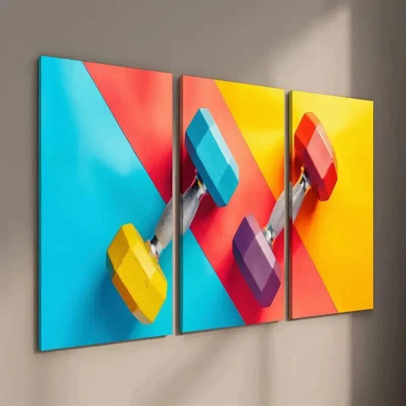 3pcs Fitness & Bodybuilding Dumbbell Wall Art Set Canvas Framed 40x60cm - High Quality Print 100% Australian Made Wall Canvas Ready to Hang