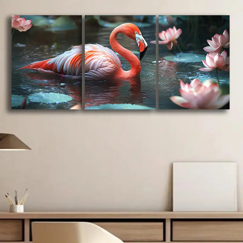 3pcs Flamingo and Lotus Flower Metal Print Ready to Hang Art