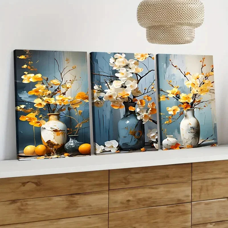 3pcs Floral Bonsai Elegant White & Yellow Florals Wall Art Set Canvas Framed 40x60cm - High Quality Print 100% Australian Made Wall Canvas Ready to Hang