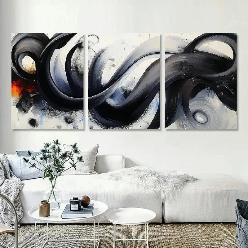 3pcs Floral Design with Black White and Orange Wall Art Set Canvas Framed 40x60cm - High Quality Print 100% Australian Made Wall Canvas Ready to Hang