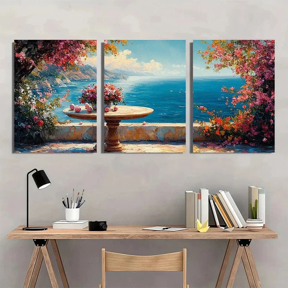 3pcs Floral Garden Vibrant Pink & Blue Flowers Metal Print Ready to Hang Art