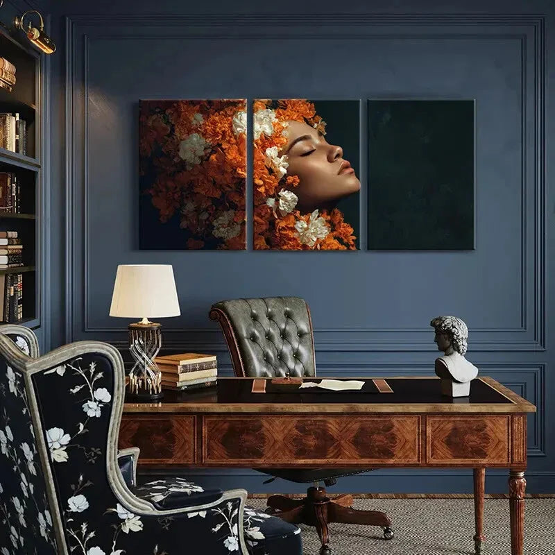 3pcs Floral Portrait with Orange & White Flowers Metal Print Ready to Hang Art