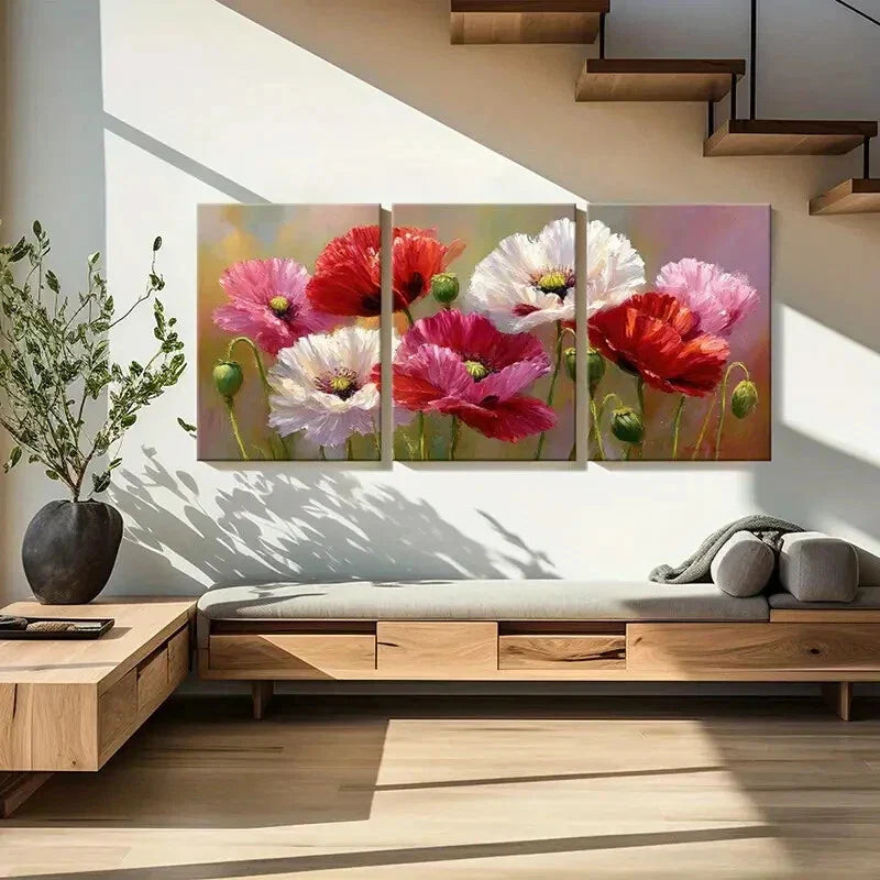 3pcs Floral Vibrant Colors Abstract Design Metal Print Ready to Hang Art