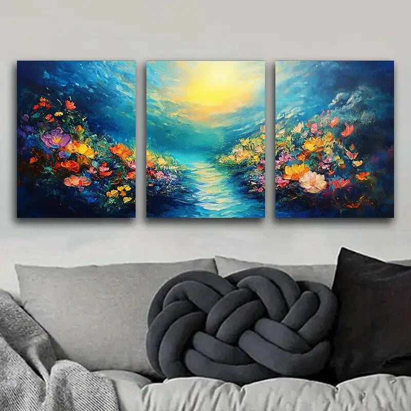 3pcs Flowers The River Of Life Painting Metal Print Ready to Hang Art