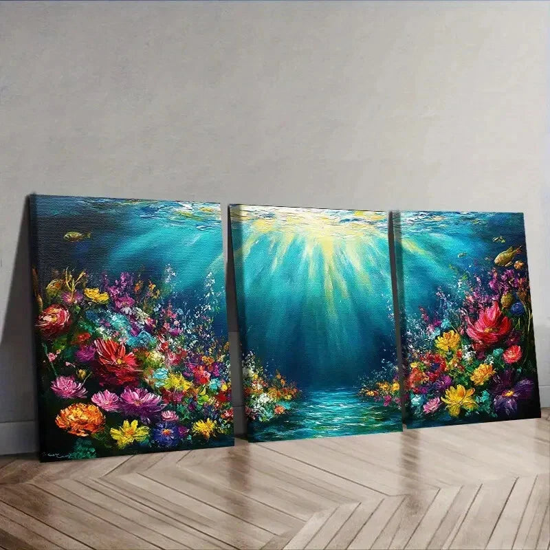 3pcs Flowers The river of life Wall Art Set Canvas Framed 40x60cm - High Quality Print 100% Australian Made Wall Canvas Ready to Hang