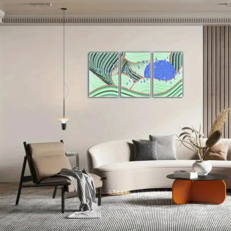 3pcs Flying Birds & Golden Sun Design, Metal Print Ready to Hang Art