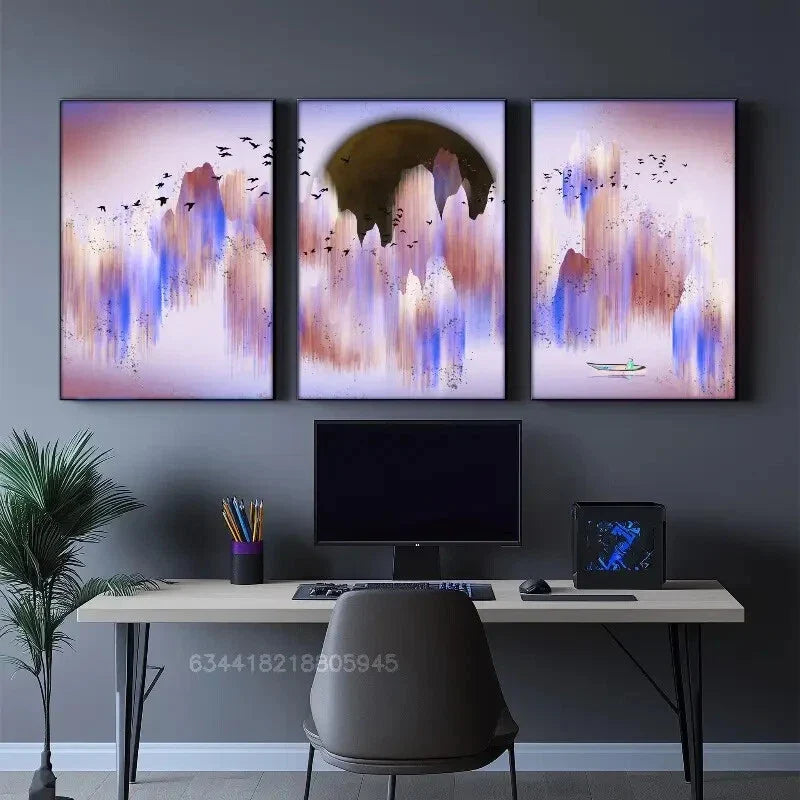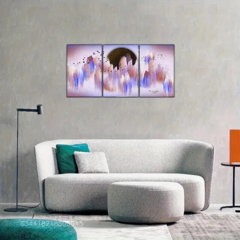 3pcs Flying birds, mountains, boats, landscape Metal Print Ready to Hang Art
