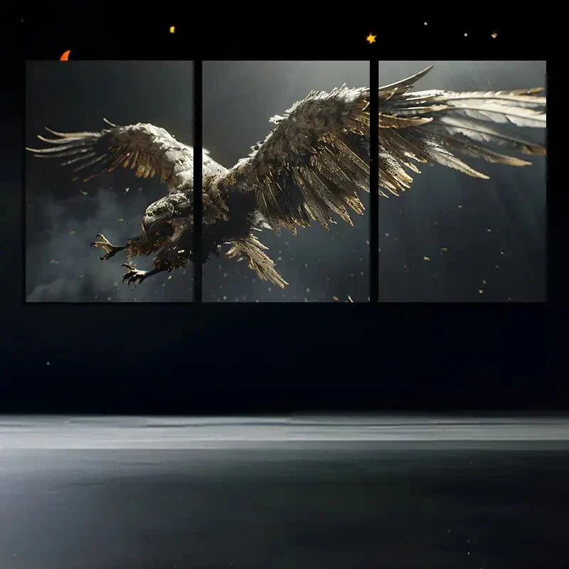 3pcs Flying White Eagle Black & White Metal Print Ready to Hang Art