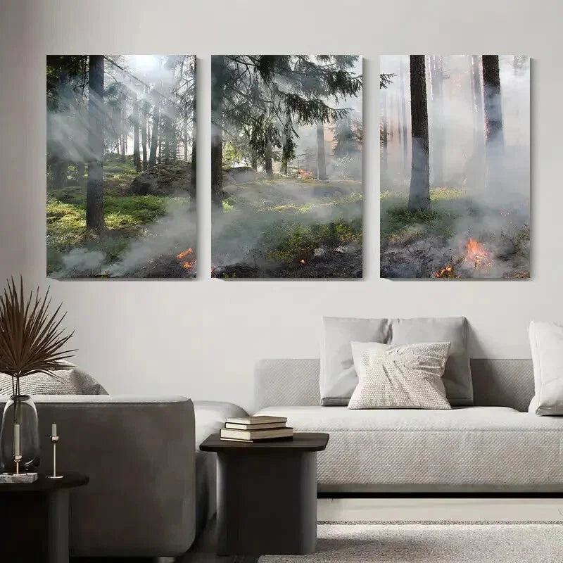 3pcs Forest Fire in Nature Smoky Forest Metal Print Ready to Hang Art