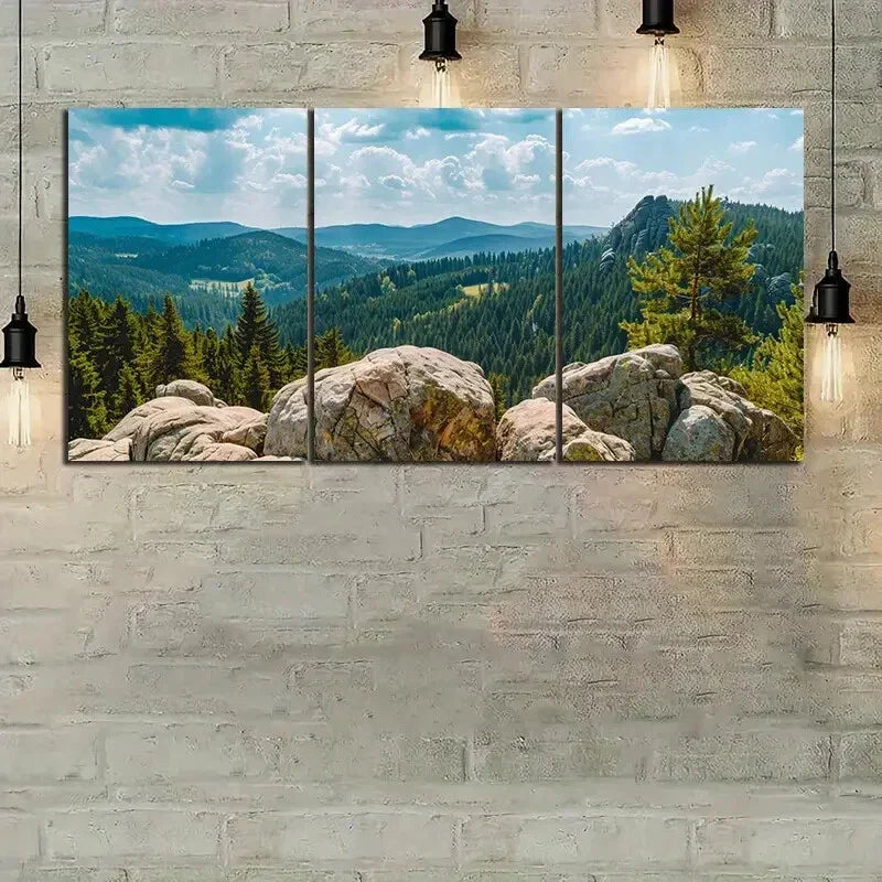 3pcs Forest Mountain View Triptych Metal Print Ready to Hang Art