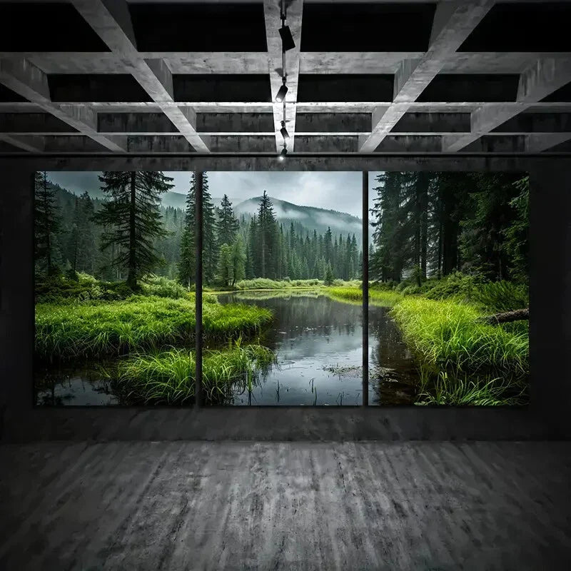 3pcs Forest Pond Scenery Palm Trees Metal Print Ready to Hang Art