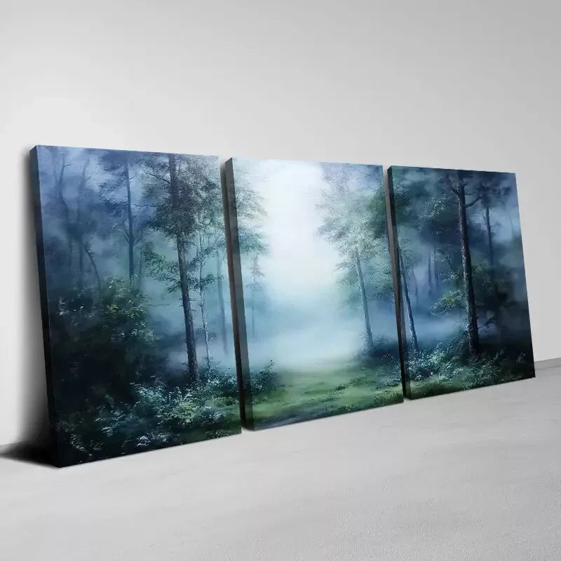 3pcs Fragrant dark Misty Forest Wall Art Set Canvas Framed 40x60cm - High Quality Print 100% Australian Made Wall Canvas Ready to Hang