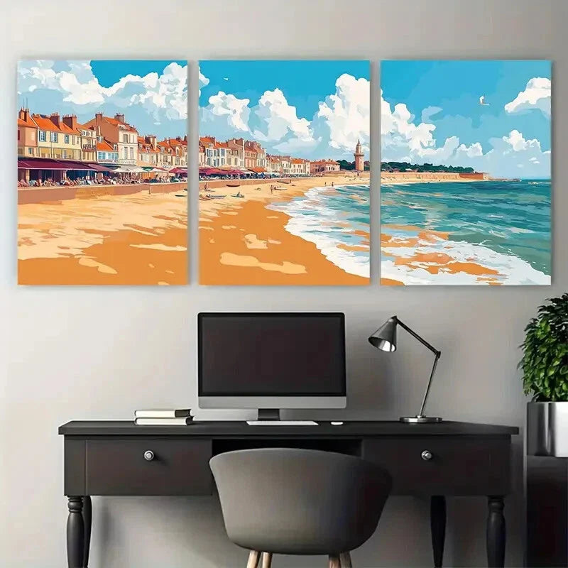 3pcs France Coastal Beach Unique Metal Print Ready to Hang Art