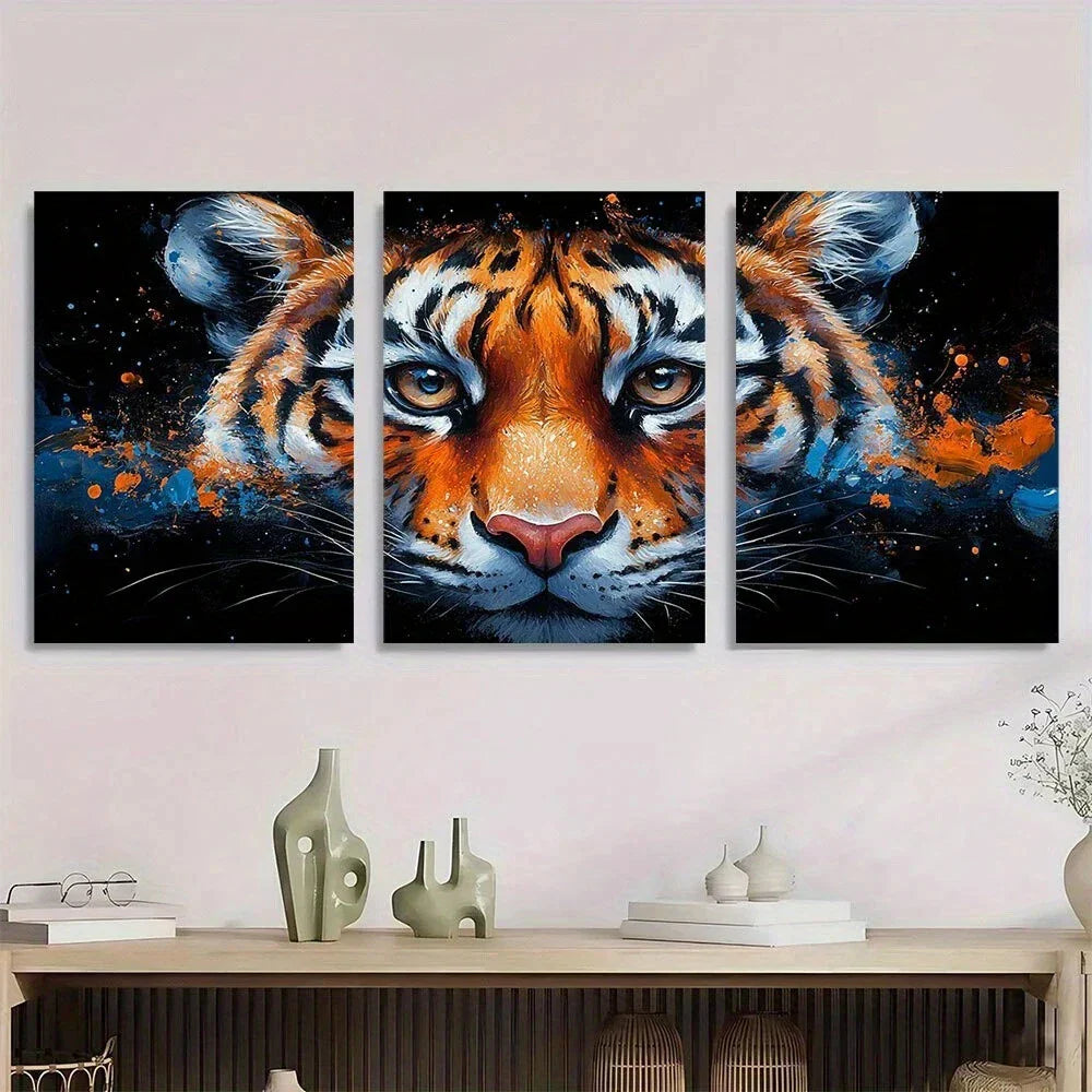 3pcs Funny Abstract Animal Tiger Metal Print Ready to Hang Art