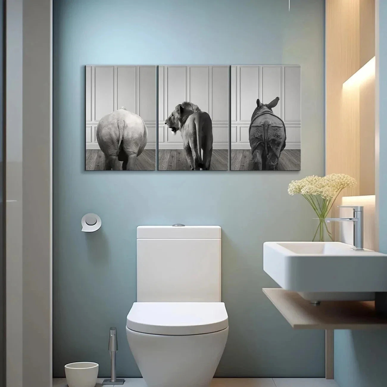 3pcs Funny African Animals Lion Elephant Metal Print Ready to Hang Art