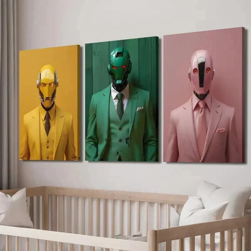 3pcs Future Robot World Creative Illustrations Wall Art Set Canvas Framed 40x60cm - High Quality Print 100% Australian Made Wall Canvas Ready to Hang