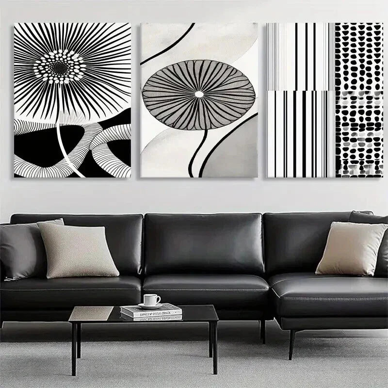 3pcs Geometric and Linear Flower Design Perfect Wall Art Set Canvas Framed 40x60cm - High Quality Print 100% Australian Made Wall Canvas Ready to Hang