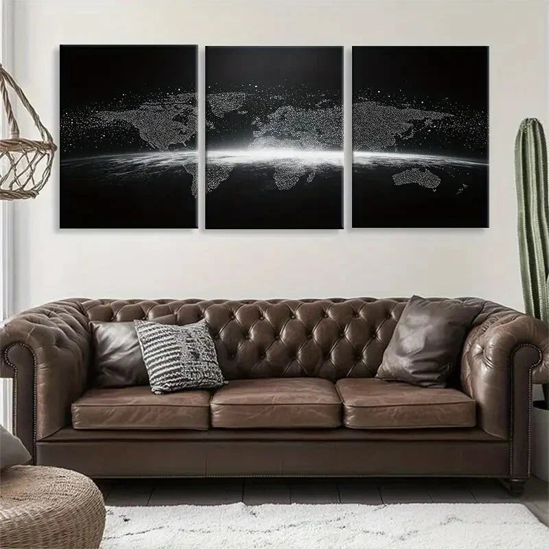 3pcs Geometric Black White Design Map Perfect Wall Art Set Canvas Framed 40x60cm - High Quality Print 100% Australian Made Wall Canvas Ready to Hang