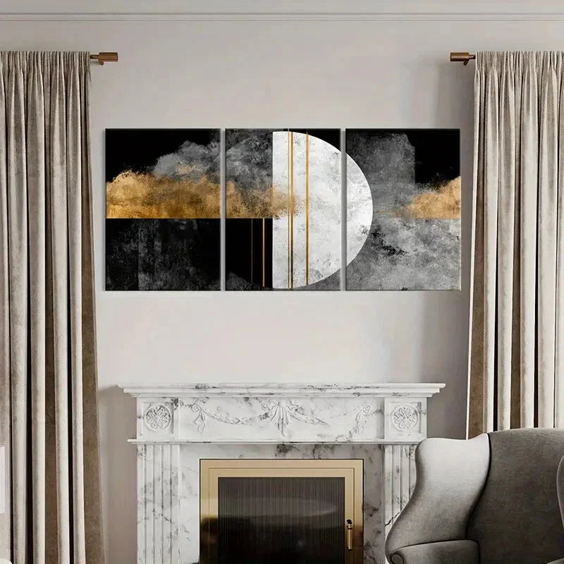 3pcs Geometric Marble Texture Golden Lines Metal Print Ready to Hang Art